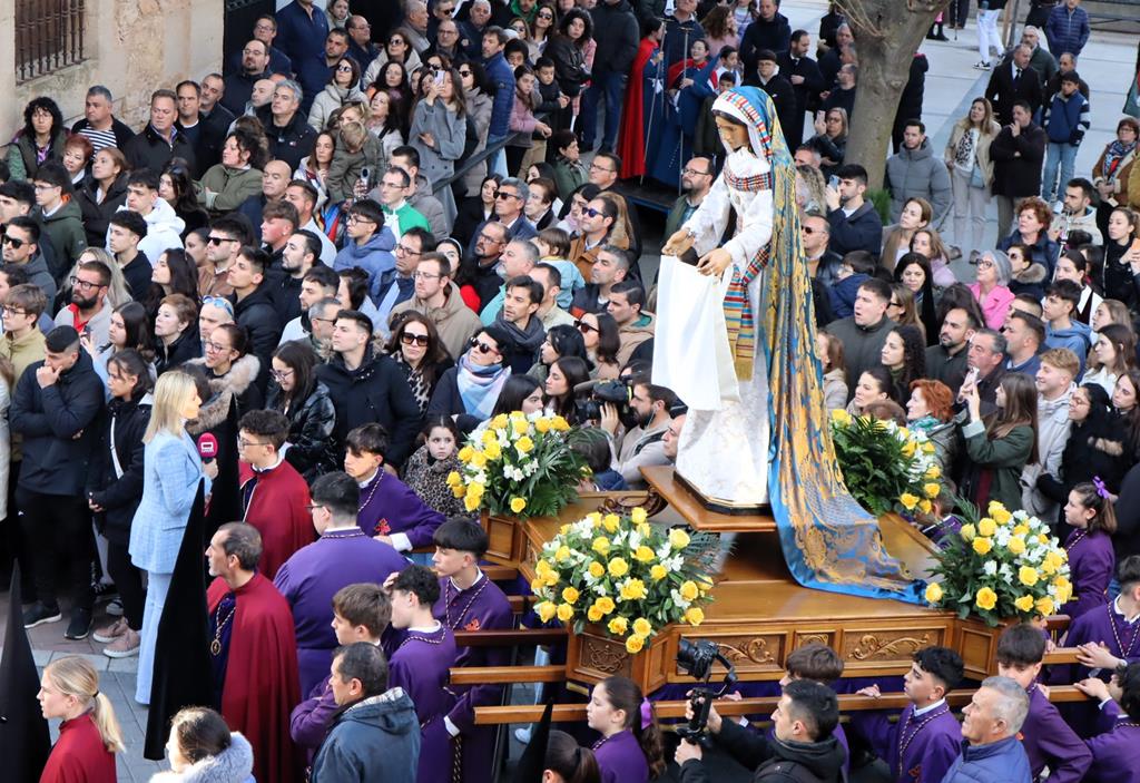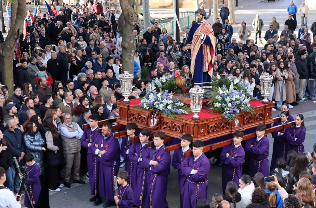 En torno a las 8 de la mañana, finalizado el Sermón de Pasión, miles de criptanenses y vecinos se agolpaban en la Plaza Mayor y en sus inmediaciones para vivir momentos únicos en la Semana Santa de Campo de Criptana en torno a una de las procesiones que mayor número de pasos e imágenes congrega.
