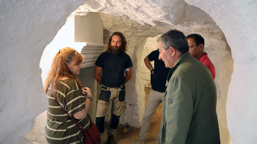 El alcalde de Campo de Criptana, Santiago Lázaro, y la viceconsejera de Cultura y Deportes de Castilla-La Mancha, Carmen Teresa Olmedo, han visitado las obras de rehabilitación de la casa cueva ubicada bajo el mirador de la Sierra de los Molinos. Este nuevo recurso turístico, que abrirá sus puertas al público el próximo mes, se incorporará al itinerario patrimonial de uno de los entornos más emblemáticos de La Mancha.
