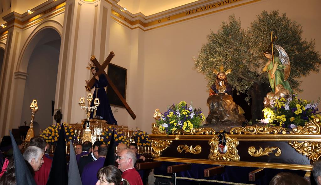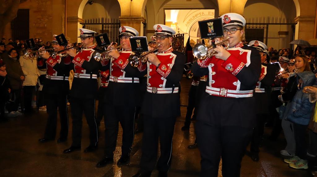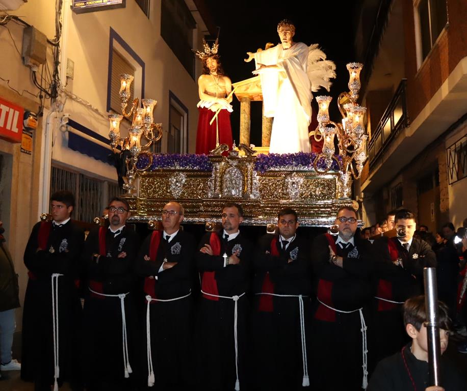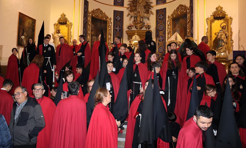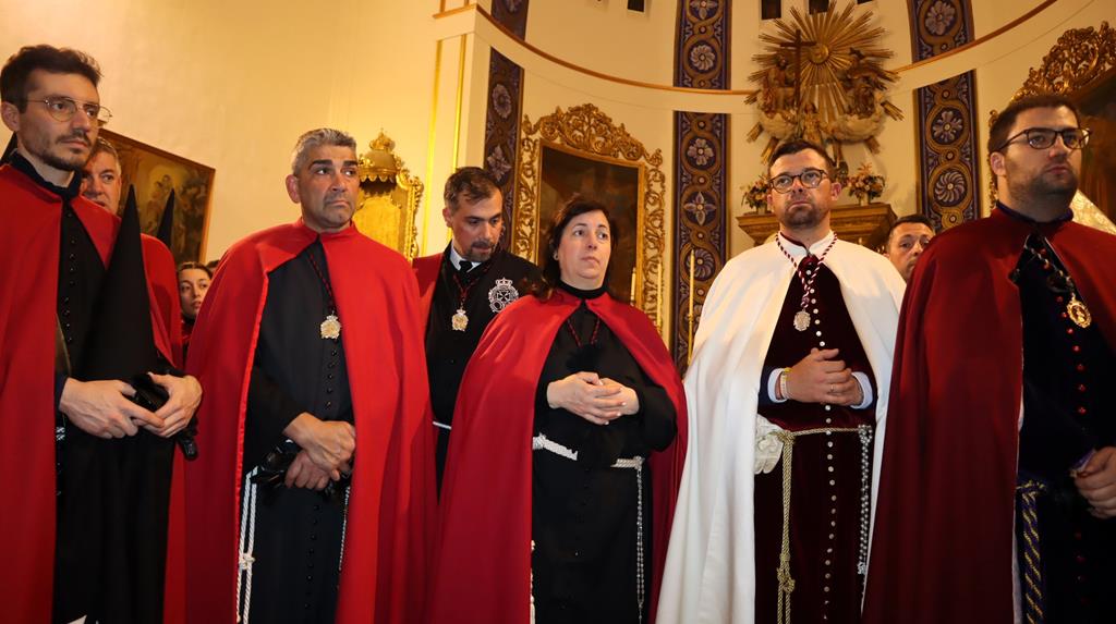 Una noche, que se antojaba difícil por la lluvia, que comenzaba a las 22:00 horas en la Iglesia Parroquial con la celebración del emblemático Rosario de Penitencia, oficiado por el sacerdote Pablo Cornejo Martínez y con la presencia de los pasos de La Oración en el Huerto, La Sentencia, el Santísimo Cristo de la Columna, Nuestro Padre Jesús Nazareno y el Cristo de la Expiración.