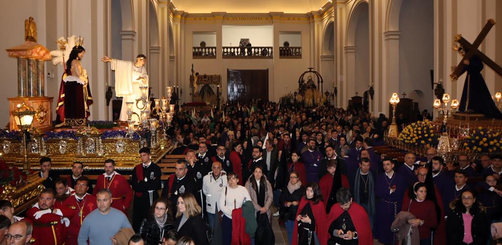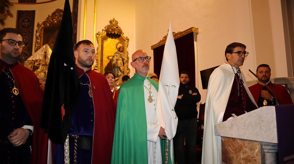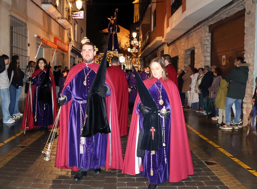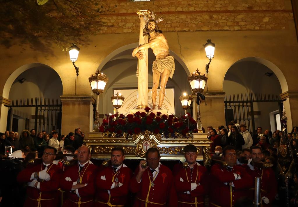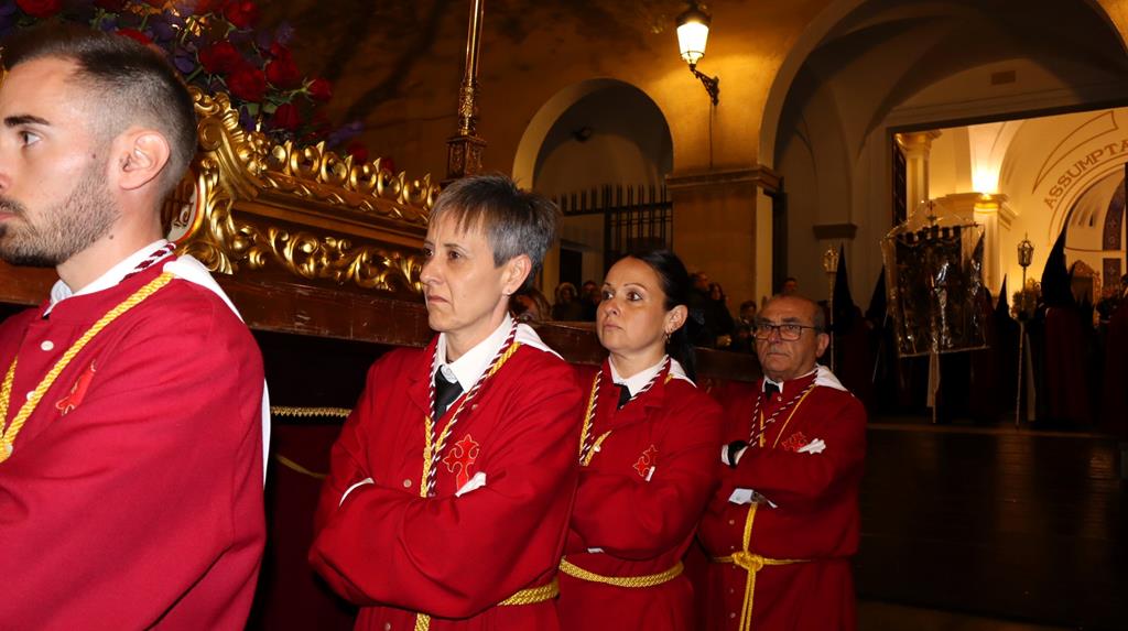 Una noche, que se antojaba difícil por la lluvia, que comenzaba a las 22:00 horas en la Iglesia Parroquial con la celebración del emblemático Rosario de Penitencia, oficiado por el sacerdote Pablo Cornejo Martínez y con la presencia de los pasos de La Oración en el Huerto, La Sentencia, el Santísimo Cristo de la Columna, Nuestro Padre Jesús Nazareno y el Cristo de la Expiración.