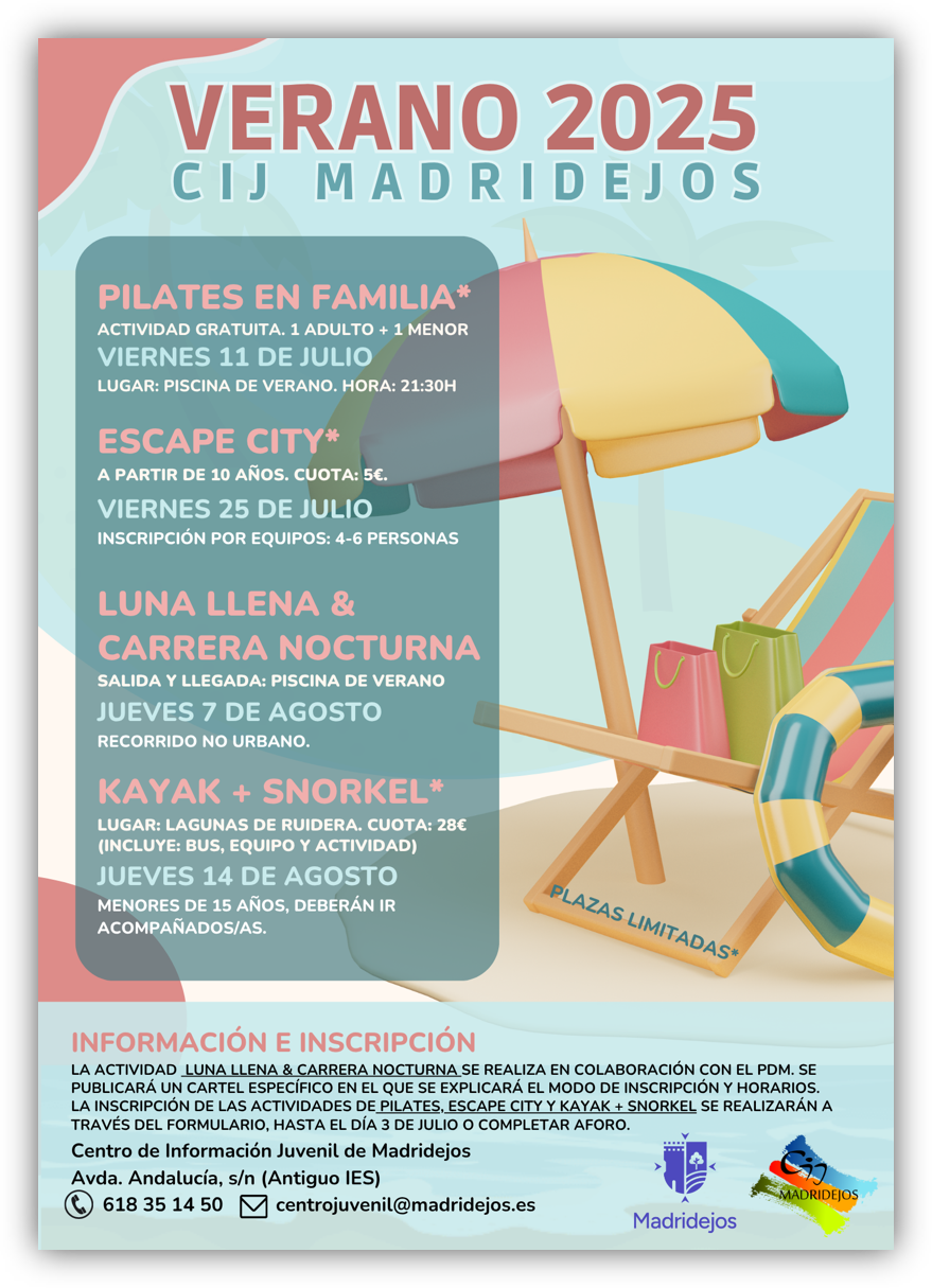 El Centro Juvenil de Madridejos ha presentado su programación de actividades para el Verano 2025, una propuesta variada y dinámica pensada para ofrecer alternativas de ocio, formación y convivencia a la juventud del municipio.
