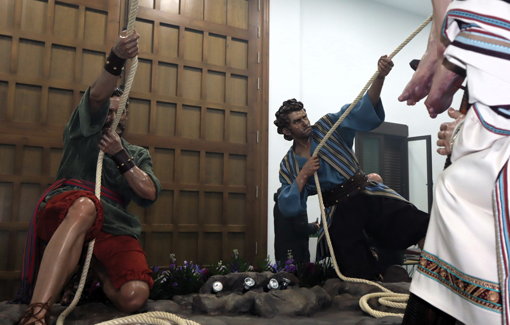 En sus inicios, el conjunto estaba formado por figuras de serie procedentes de los talleres El Arte Religioso de Olot, pero con el tiempo se inició un proceso de sustitución por tallas de mayor calidad artística y devocional.