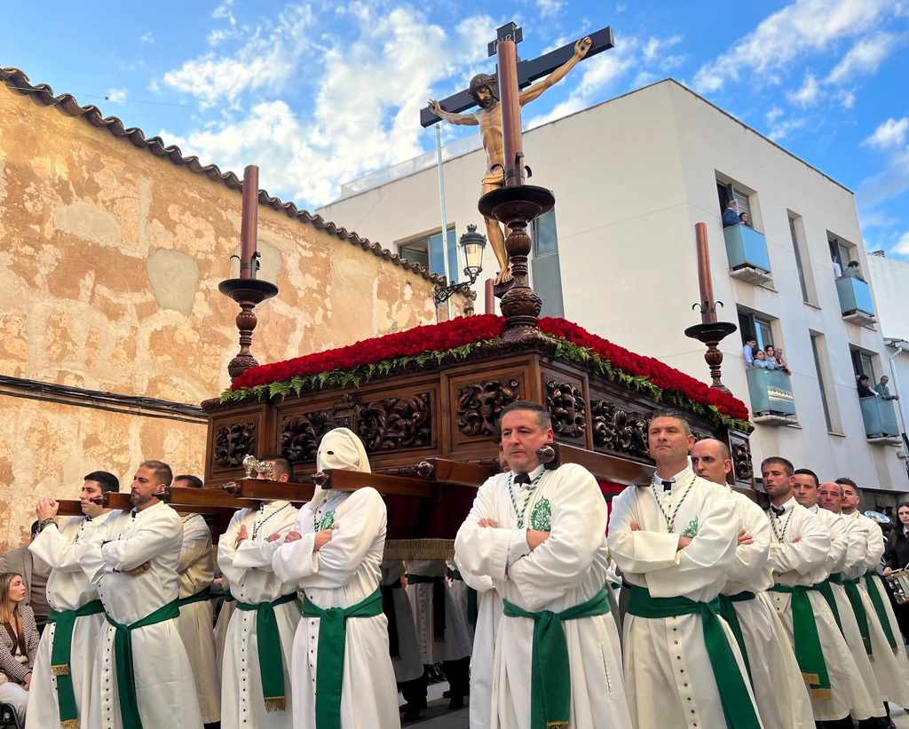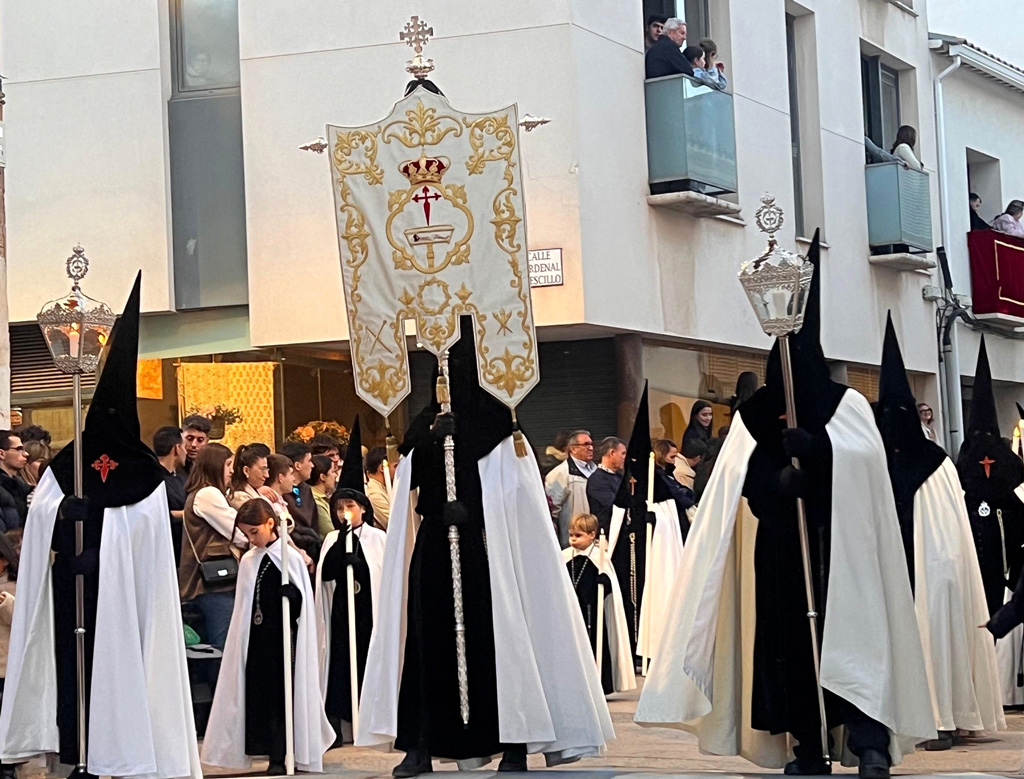 Las seis cofradías de pasión con las imágenes de La Crucifixión, Elevación, Espiración, Esperanza, Lanzada, Descendimiento, Cruz, Piedad, Entierro y Soledad, miles de nazarenos acompañando el cortejo de cada una de ellas, ocho bandas de música y todo un pueblo echado a la calle para disfrutar de la procesión del Santo Entierro ponían punto y final a la Semana Santa criptanense a la espera de que la lluvia permita, en la noche del sábado, 19 de abril, la salida de Jesús Resucitado, tras la celebración de la Vigilia Pascual en la parroquia de la Asunción de Nuestra Señora.