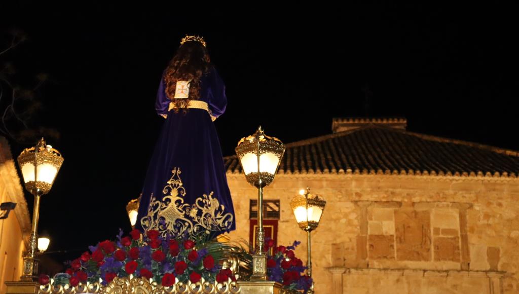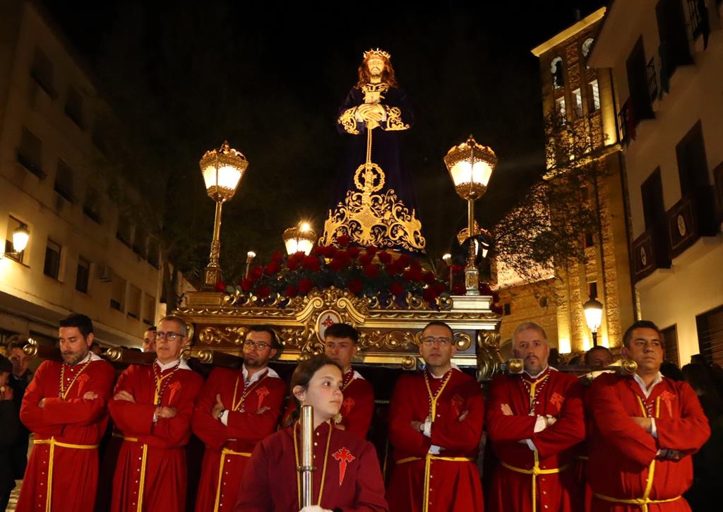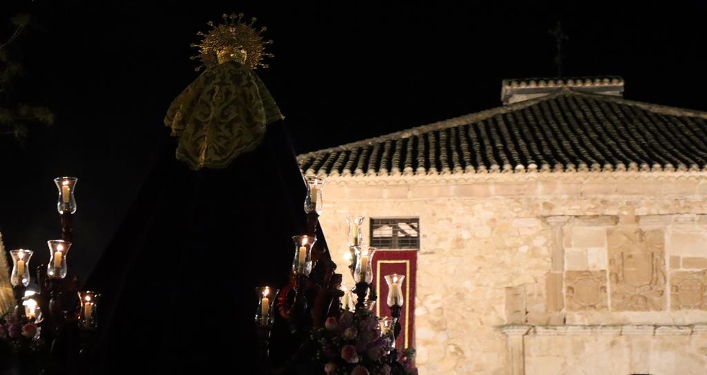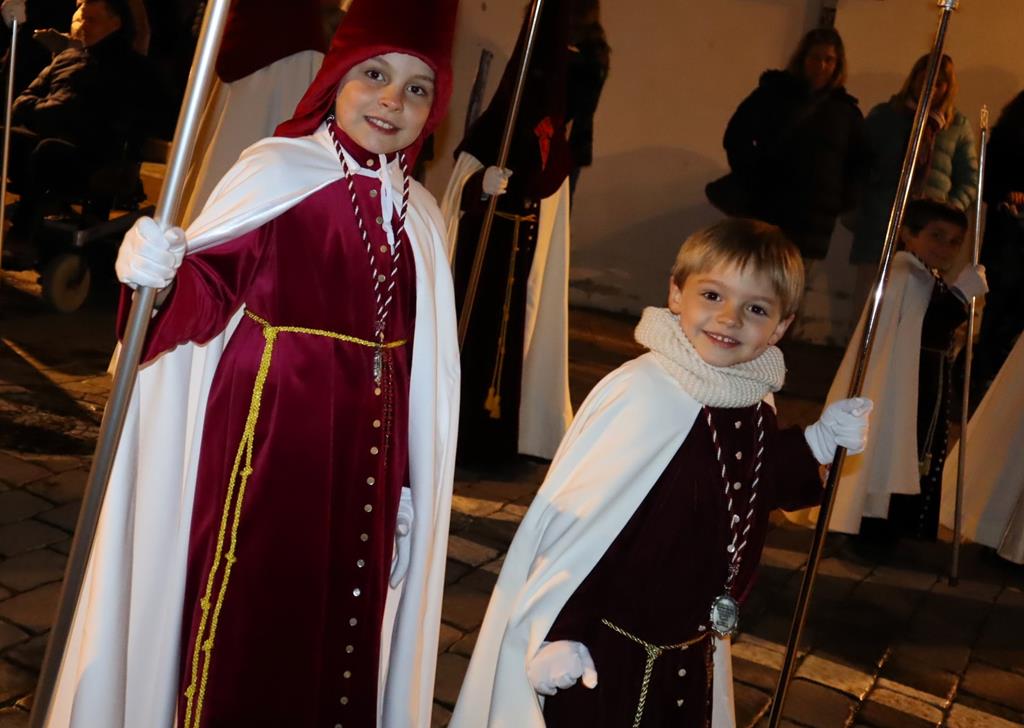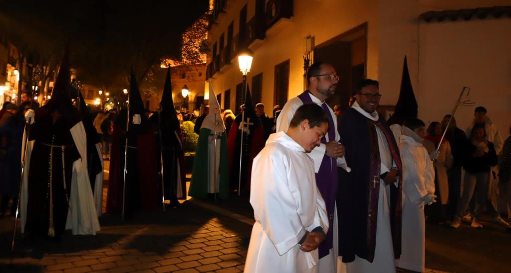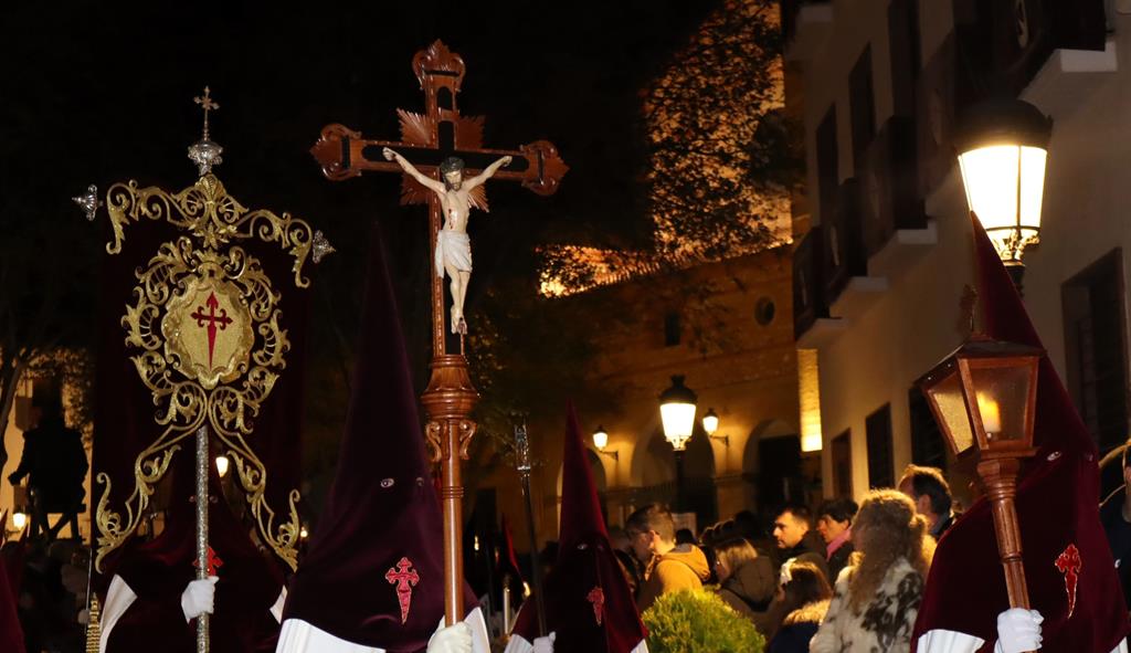 Ni el intenso frío nocturno ni la constante amenaza de lluvia pudieron impedir que la Hermandad de la Veracruz llevara a cabo, en la noche del Martes Santo, una de las procesiones más emblemáticas de la Semana Santa criptanense. Puntualmente, a las 22:00 horas, las puertas de la Ermita de la Veracruz se abrían de par en par para dar paso a la Cruz de Guía e iniciar el solemne desfile procesional con las imágenes de Nuestro Padre Jesús Rescatado de Medinaceli y María Santísima de la Redención.