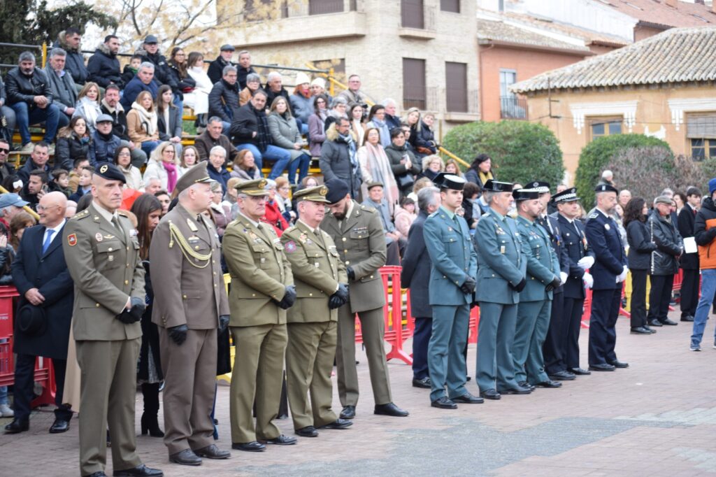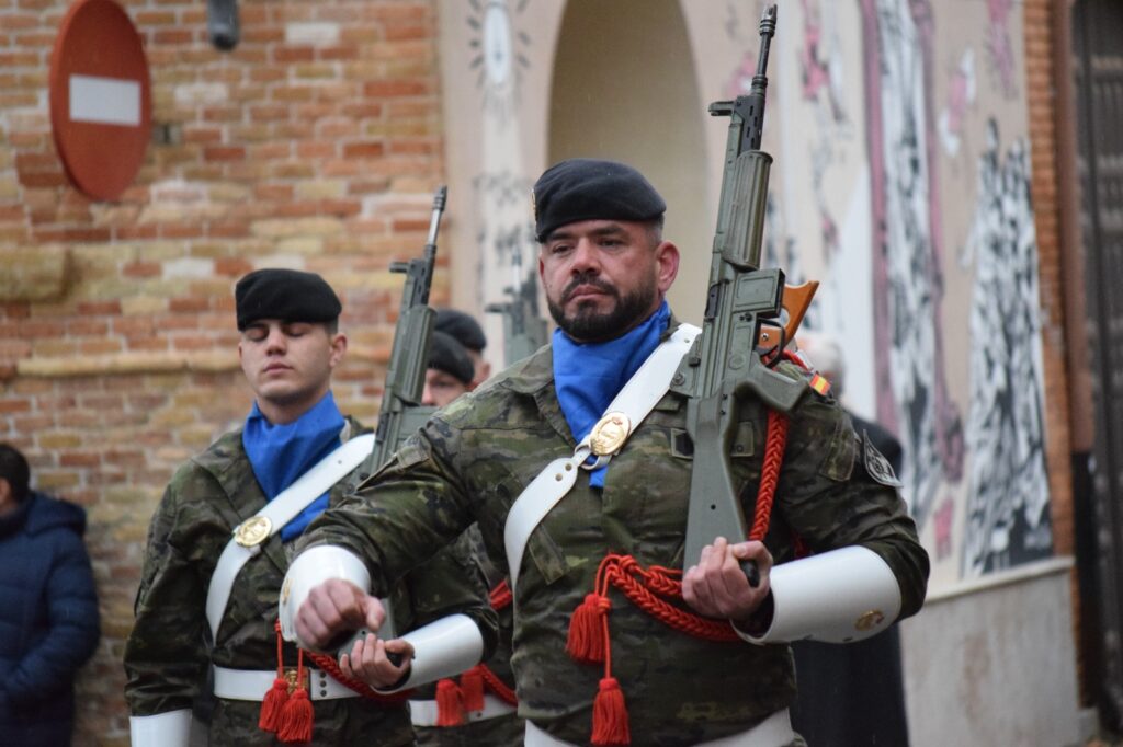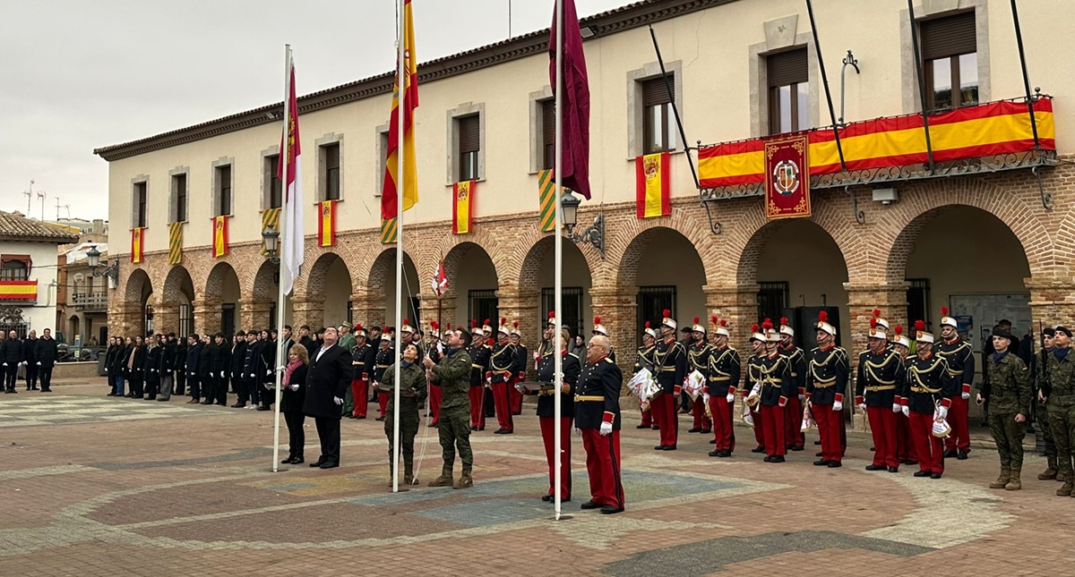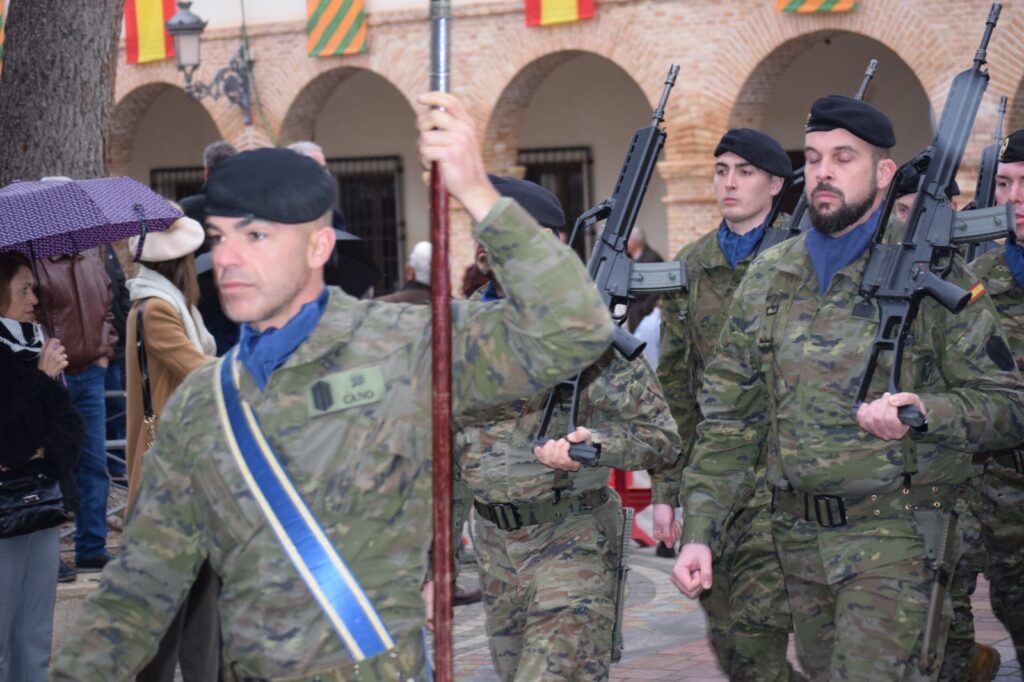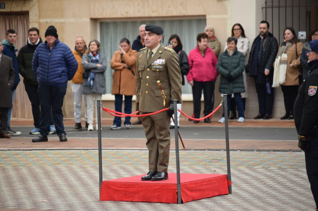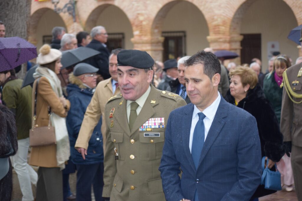 La propia plaza del Ayuntamiento ha sido el escenario para la recepción de autoridades civiles y militares, dando paso al Rendimiento de Honores. El Alcalde de Madridejos, Francisco López Arenas, y el Excelentísimo Señor General Jefe de la Brigada Guadarrama XII han presidido el acto y pasado revista a las tropas y civiles participantes.