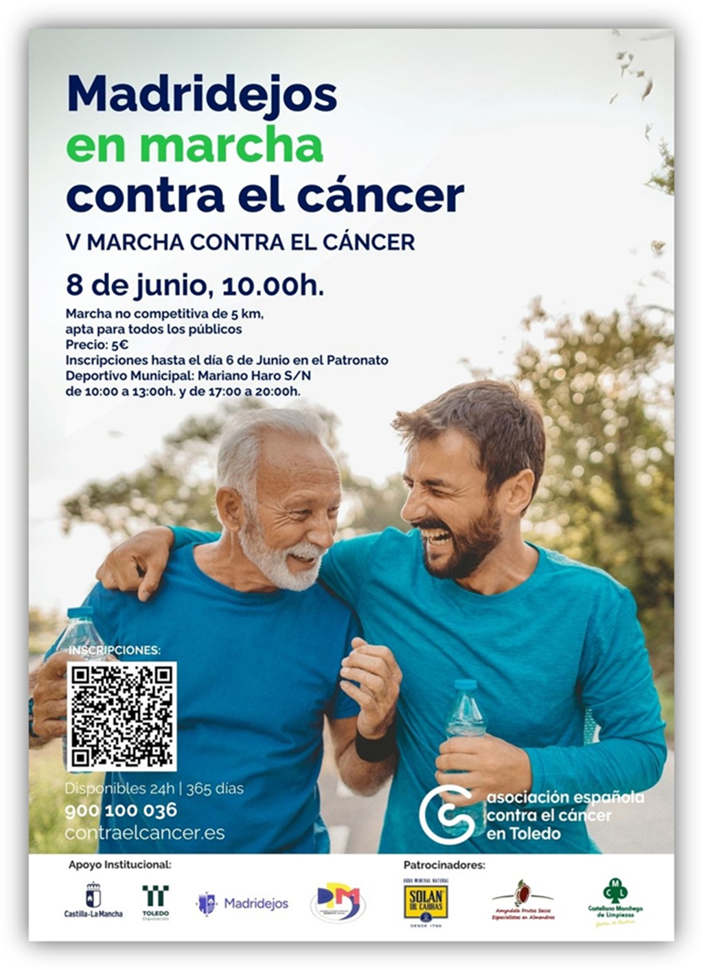 El precio de la inscripción es de 5 euros, y puede realizarse hasta el 6 de junio en el Patronato Deportivo Municipal (C/ Mariano Haro, s/n) en horario de 10:00 a 13:00 y de 17:00 a 20:00 horas, o bien de forma online a través del formulario habilitado: V Marcha Contra el Cáncer – Madridejos 2025.