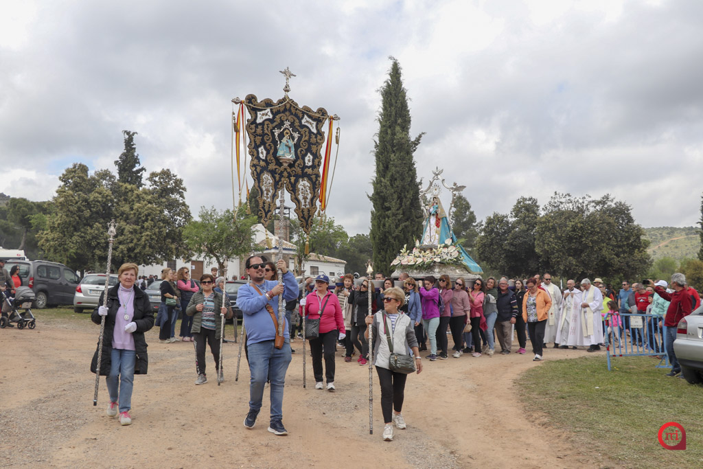 Finalizada la ceremonia, se ha llevado a cabo la tradicional procesión de la Virgen de Valdehierro por la explanada del santuario. Durante el recorrido, autoridades civiles y eclesiásticas —con el alcalde Francisco López Arenas al frente—, así como numerosos fieles y devotos, han acompañado la imagen de la patrona, turnándose para portar sus andas. El acto ha concluido con la simbólica bendición de las Sierras.