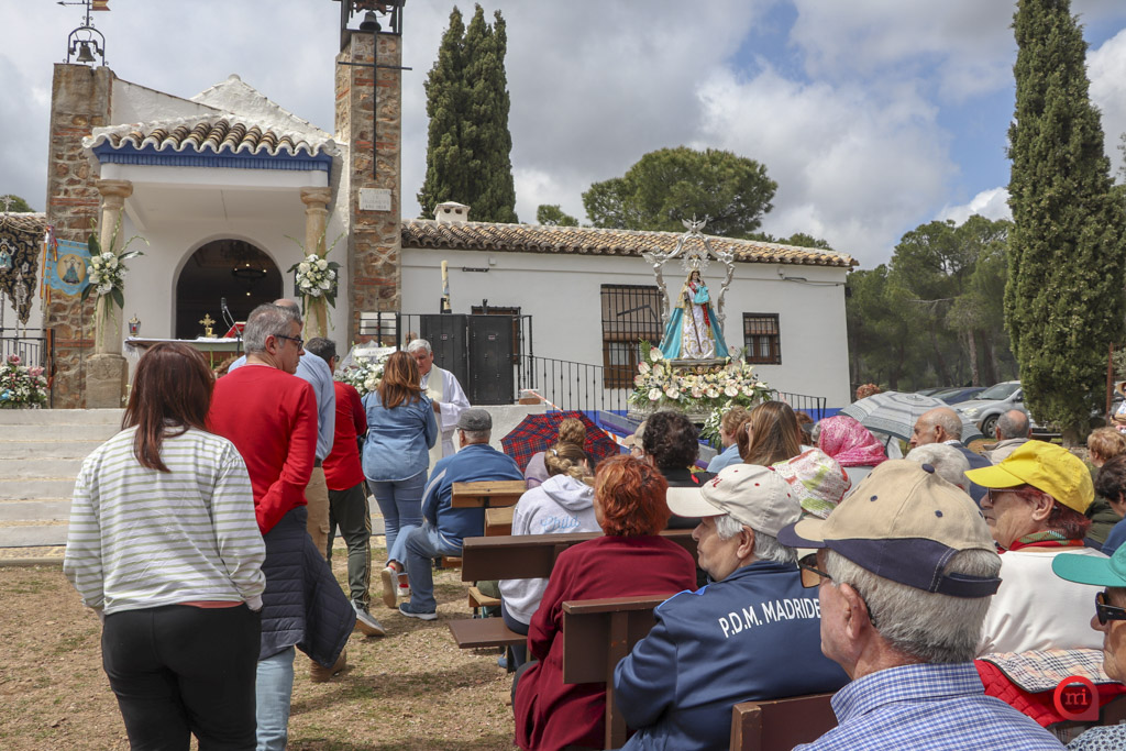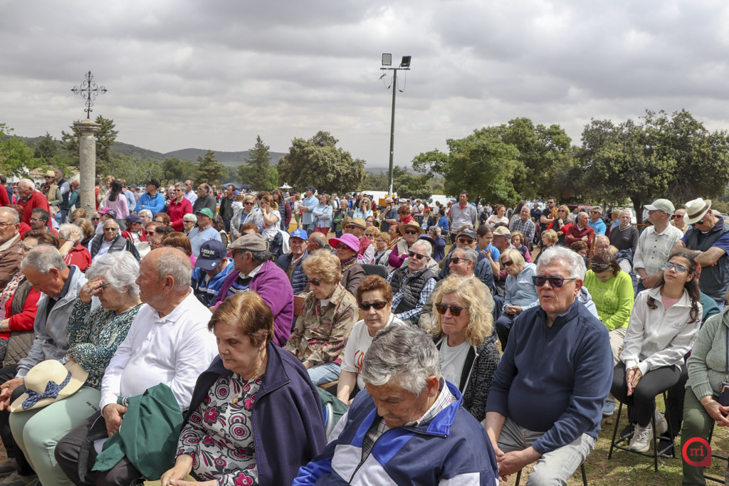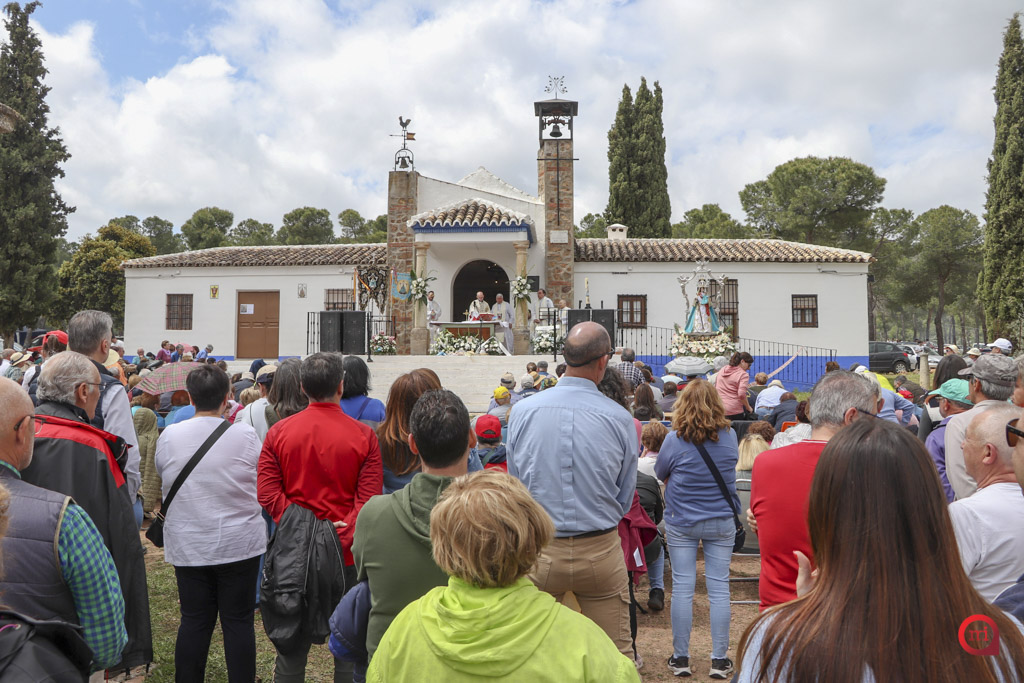 A las 12:00 del mediodía ha tenido lugar la solemne Eucaristía, concelebrada y presidida por Don José Luis Mariblanca, sacerdote natural de Madridejos, que este año celebra su 25 aniversario de ordenación. La misa, oficiada al aire libre junto a la puerta de la ermita, ha contado con una gran afluencia de devotos.