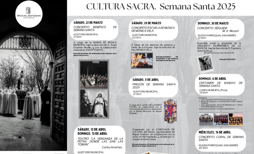De esta manera, Miguel Esteban vivirá una Cuaresma y Semana Santa acompañada de diversa oferta cultural y musical.