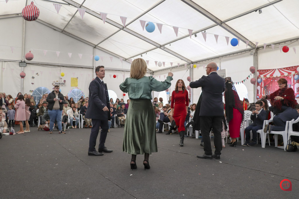 Tras la Misa Solemne, las autoridades, los Capitanes, los migueletes y los visitantes se desplazaron hasta la Carpa del Carnaval instalada en el Auditorio de Verano, donde se formó el tradicional corro. En su centro, las personas que han pujado realizaron su baile, aunque, debido a la lluvia, este año no se celebró a los pies de la vendimiadora, como es habitual.
